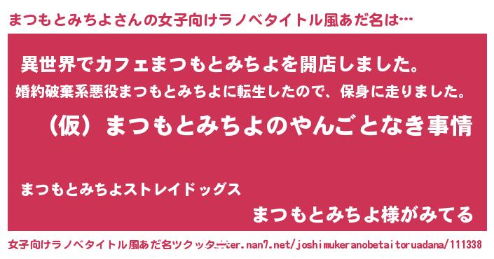 | 男性向けラノベタイトル風あだ名 | 『まつもとみちよの憂鬱』 |