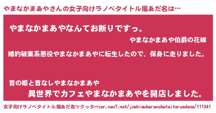 | 男性向けラノベタイトル風あだ名 | 『ヤマナカマアヤスレイヤー』 |