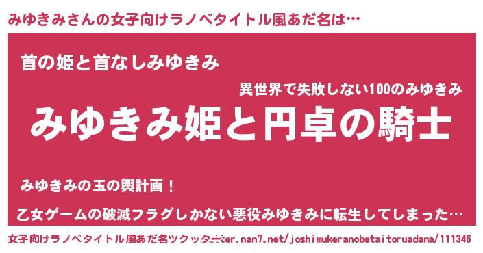 | 男性向けラノベタイトル風あだ名 | 『ミユキミアートオンライン』 |
