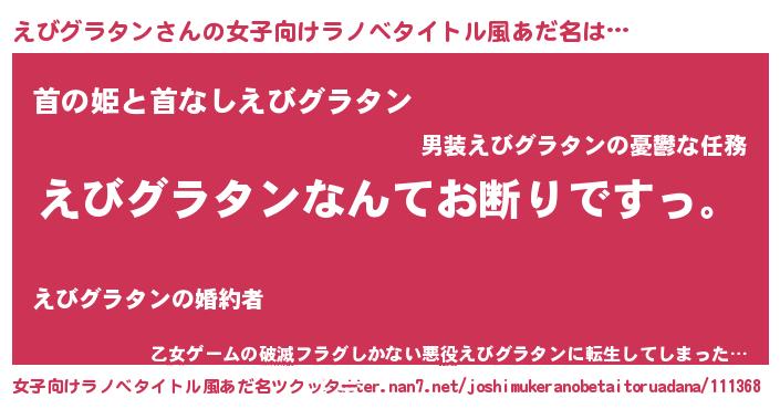 | 意味不明あだ名 | 『自称えびグラタン』 |