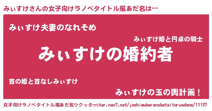 | 男性向けラノベタイトル風あだ名 | 『うちの娘の為ならば、俺はもしかしたらみぃすけも倒せるかもしれない。』 |