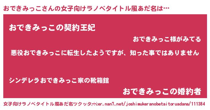 | 男性向けラノベタイトル風あだ名 | 『この素晴らしい世界におできみっこを!』 |
