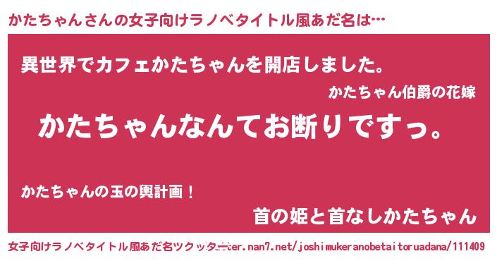 | 男性向けラノベタイトル風あだ名 | 『魔法科高校のかたちゃん』 |