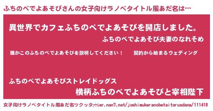 | 男性向けラノベタイトル風あだ名 | 『フチノベデヨアソビアートオンライン』 |