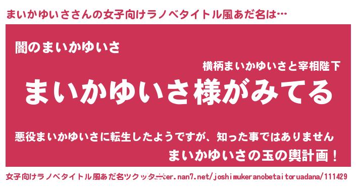 | 男性向けラノベタイトル風あだ名 | 『まいかゆいさの嫁は女の子じゃないと思った?』 |
