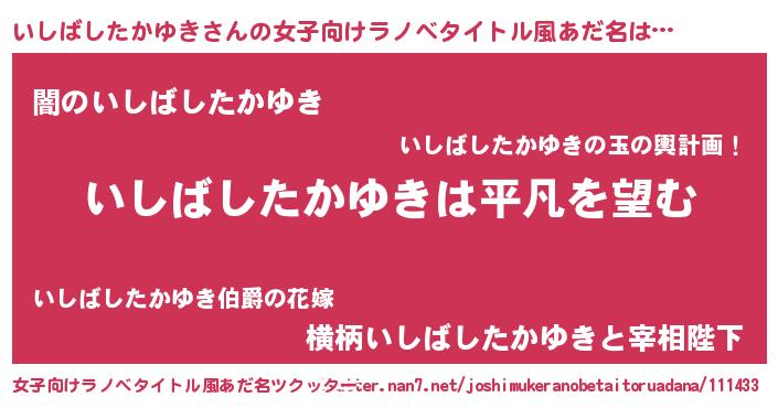 | 男性向けラノベタイトル風あだ名 | 『ダンジョンにいしばしたかゆきを求めるのは間違っているだろうか』 |
