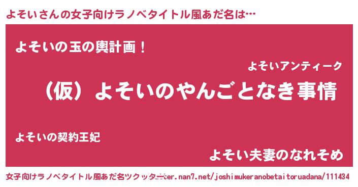 | 男性向けラノベタイトル風あだ名 | 『よそいの憂鬱』『魔法科高校のよそい』 |