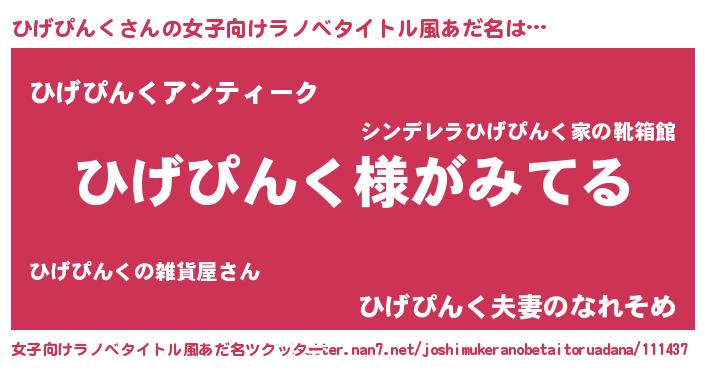 | 男性向けラノベタイトル風あだ名 | 『ひげぴんくの嫁は女の子じゃないと思った?』 |