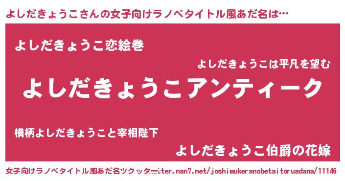 | 男性向けラノベタイトル風あだ名 | 『魔法科高校のよしだきょうこ』 |