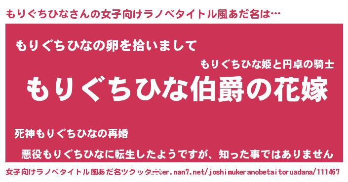 | 男性向けラノベタイトル風あだ名 | 『やはりもりぐちひなの青春ラブコメはまちがっている 』 |