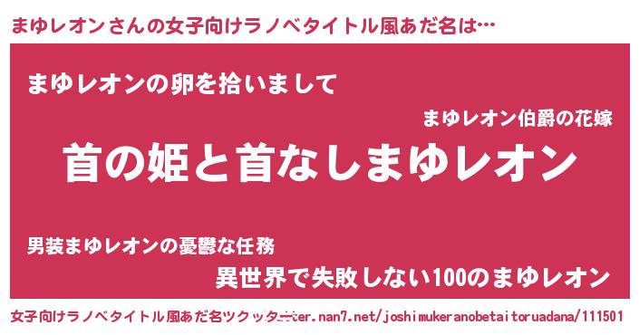 | 男性向けラノベタイトル風あだ名 | 『はたらくまゆレオンさま!』 |