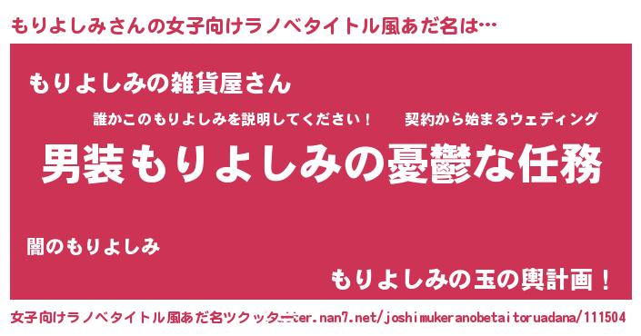 | ヒーロー風カッコイイあだ名 | 『ウルトラもりよしみマン』 |