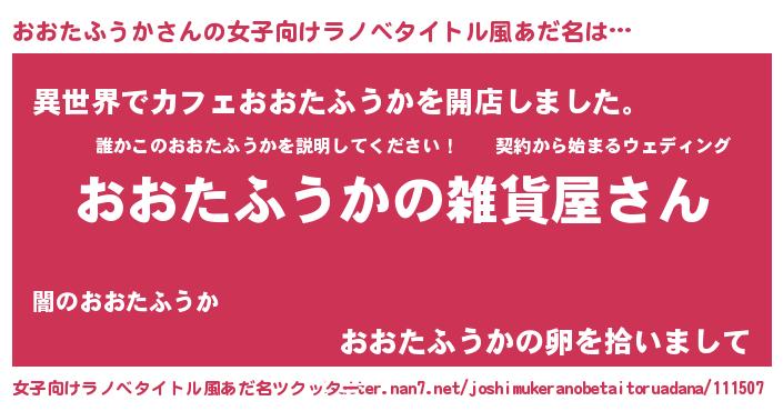 | 男性向けラノベタイトル風あだ名 | 『やはりおおたふうかの青春ラブコメはまちがっている 』 |