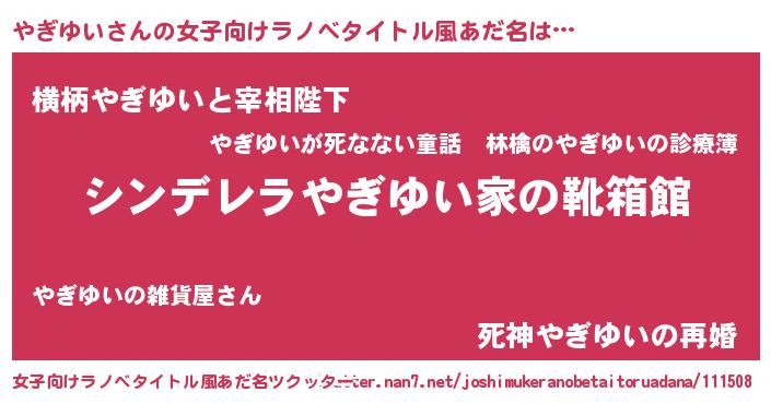 | 欧米人風あだ名 | 『やぎゆい・ステッグマイヤー』 |