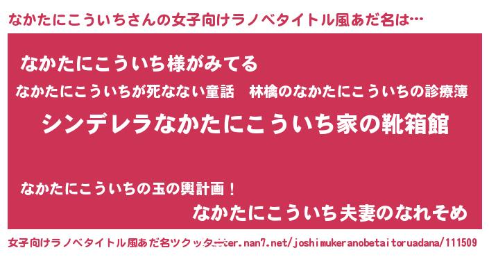 | 男性向けラノベタイトル風あだ名 | 『緋弾のナカタニコウイチ』 |
