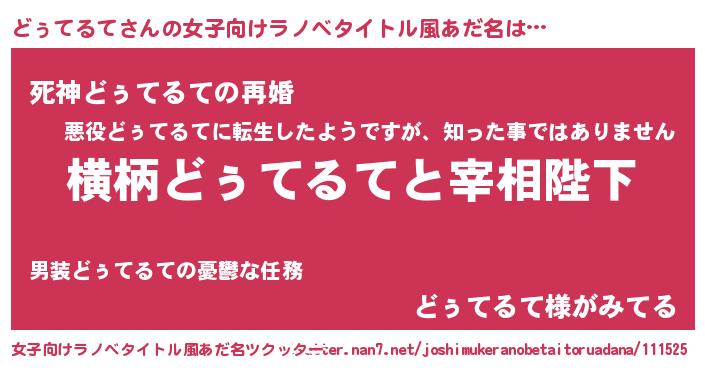 | ヒーロー風カッコイイあだ名 | 『慈愛の使者どぅてるて』『天弓騎士ドゥ』 |