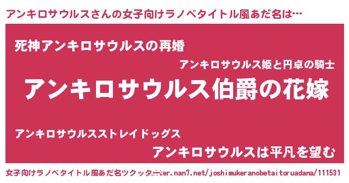 | 男性向けラノベタイトル風あだ名 | 『やはりアンキロサウルスの青春ラブコメはまちがっている 』 |