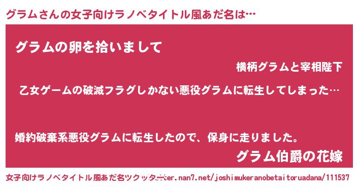 | 意味不明あだ名 | 『住所不定無職グラム(9歳)』『自称グラム』 |