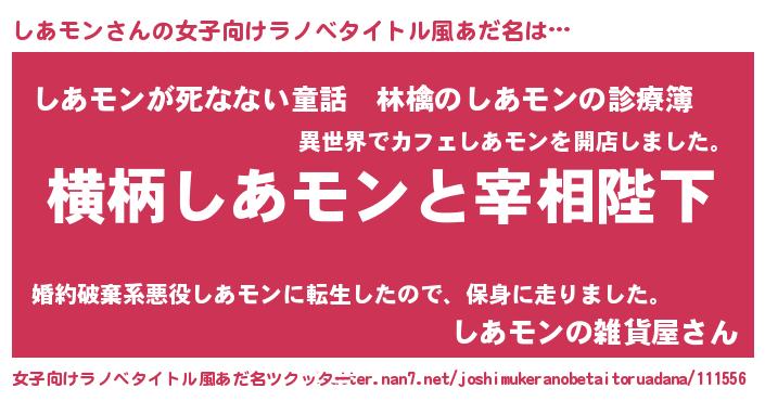 | 男性向けラノベタイトル風あだ名 | 『しあモンに滅ぼされるだけの簡単なお仕事です』 |