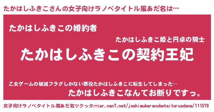 | 男性向けラノベタイトル風あだ名 | 『誰もが恐れるあのたかはしふきこが、ぼくの専属メイドになるようです。』 |