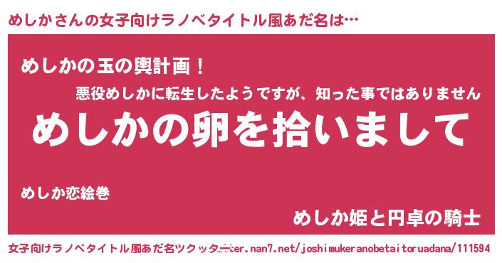 | 男性向けラノベタイトル風あだ名 | 『めしかの嫁は女の子じゃないと思った?』 |
