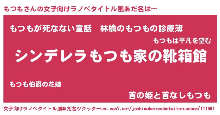 | 男性向けラノベタイトル風あだ名 | 『緋弾のモツモ』『魔弾の王ともつも』 |