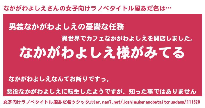 | 男性向けラノベタイトル風あだ名 | 『なかがわよしえの嫁は女の子じゃないと思った?』 |