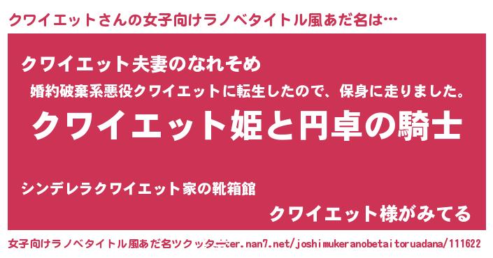 | 男性向けラノベタイトル風あだ名 | 『クワイエットアートオンライン』 |