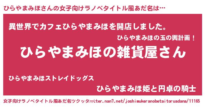 | 男性向けラノベタイトル風あだ名 | 『やはりひらやまみほの青春ラブコメはまちがっている 』 |