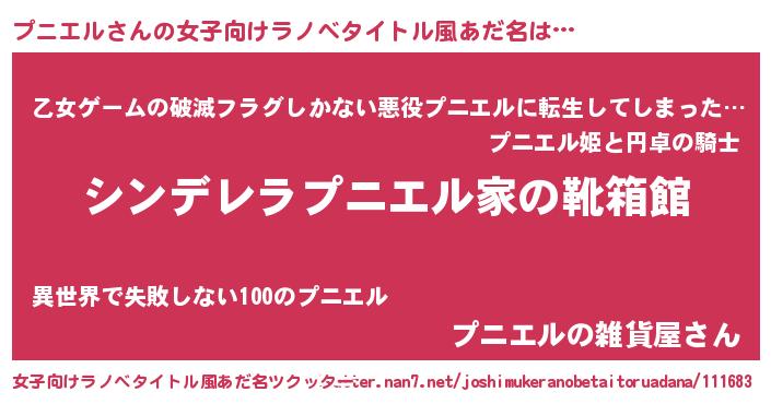 | 意味不明あだ名 | 『住所不定無職プニエル(53歳)』 |