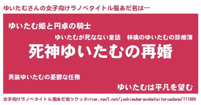 | 男性向けラノベタイトル風あだ名 | 『ノーゲーム・ノーユイタム』 |