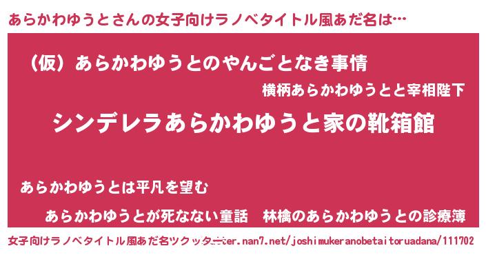 | 胡散臭い通販商品みたいなあだ名 | 『必ず成功する霊験あらたかなお札…その名も「あらかわゆうと」』 |