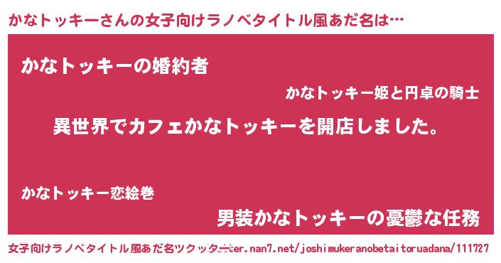 | 意味不明あだ名 | 『永久保存かなトッキー』 |