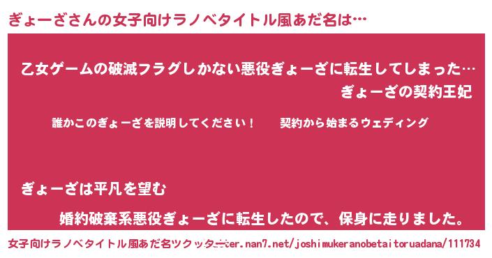 | 男性向けラノベタイトル風あだ名 | 『ギョーザアートオンライン』 |