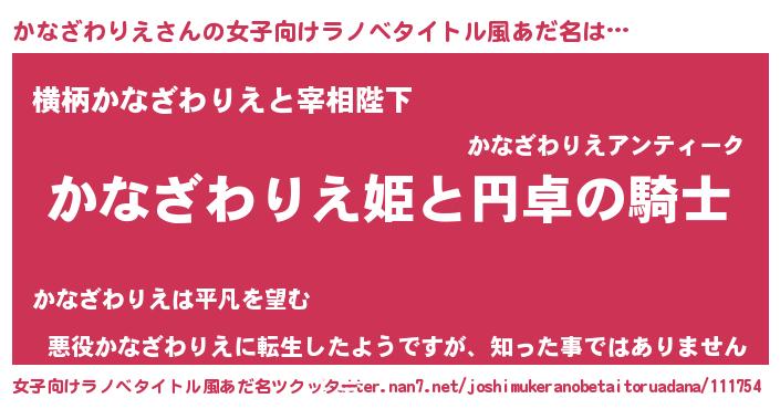 | 男性向けラノベタイトル風あだ名 | 『かなざわりえの憂鬱』 |