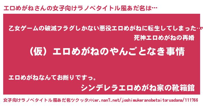 | 胡散臭い通販商品みたいなあだ名 | 『必ず成功する霊験あらたかなお札…その名も「エロめがね」』 |