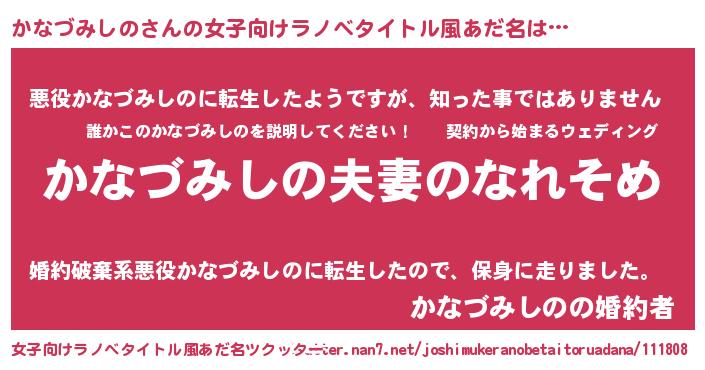 | 男性向けラノベタイトル風あだ名 | 『おまえをオタクにしてやるから、俺をかなづみしのにしてくれ! 』 |