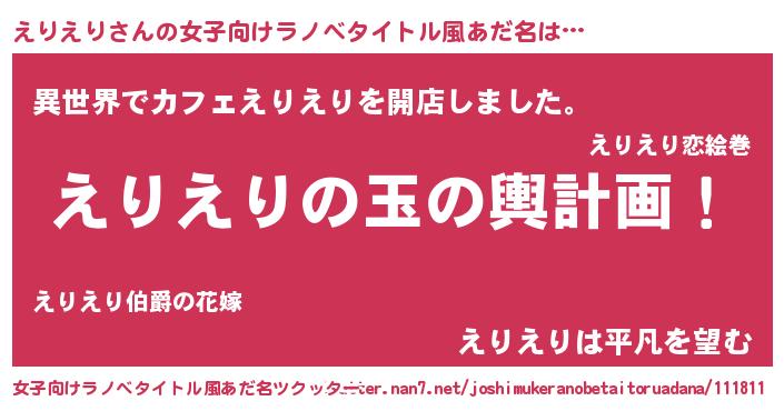 | ヘコむあだ名 | 『えりえり(笑)』『えりお』 |