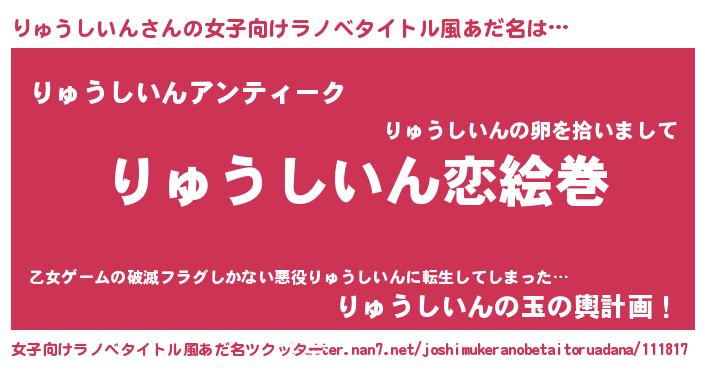 | ヘコむあだ名 | 『りゅぷりん』『りゅうしいん(笑)』 |