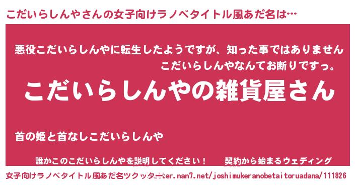 | 胡散臭い通販商品みたいなあだ名 | 『幸せが訪れる高級そうな壺…その名も「こだいらしんや」』 |