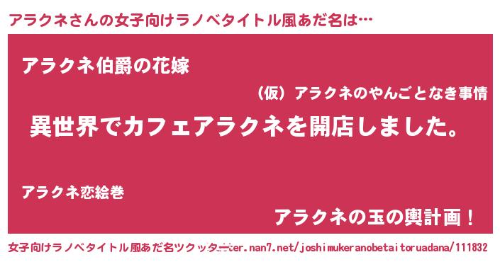 | 意味不明あだ名 | 『永久保存アラクネ』『ニラ科アラクネ属』 |