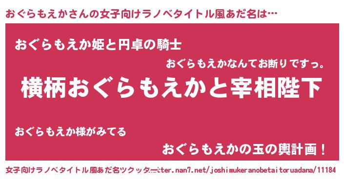 | 胡散臭い通販商品みたいなあだ名 | 『モテモテ間違いなしブレスレット…その名も「おぐらもえか」』 |