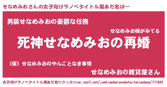 | 男性向けラノベタイトル風あだ名 | 『ノーゲーム・ノーセナメミオ』 |