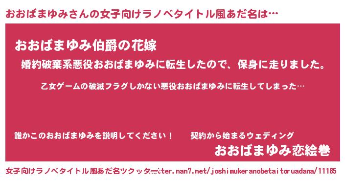 | 胡散臭い通販商品みたいなあだ名 | 『世界中を虜にした100年もののヴィンテージワイン…その名も「おおばまゆみ」』 |