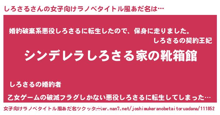 | 男性向けラノベタイトル風あだ名 | 『冴えないしろさるの育てかた』 |
