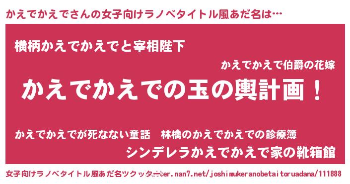 | 胡散臭い通販商品みたいなあだ名 | 『運命の人と巡り会える高級そうな絵画…その名も「かえでかえで」』 |
