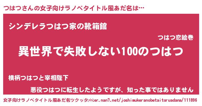 | 胡散臭い通販商品みたいなあだ名 | 『絶対に幸福をもたらす健康食品…その名も「つはつ」』 |