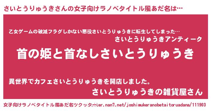 | 肩書あだ名 | 『さいとうりゅうきプロデューサー』 |