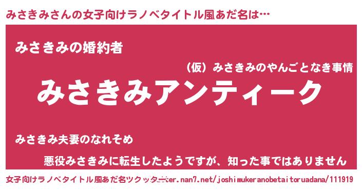 | 欧米人風あだ名 | 『ケンブリッジみさきみ』 |