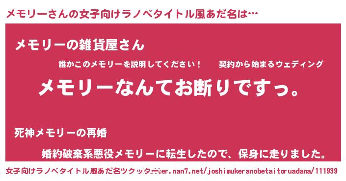 | ファンタジー風あだ名 | 『ゼメモトゥ』『エターナルメモリーー』 |